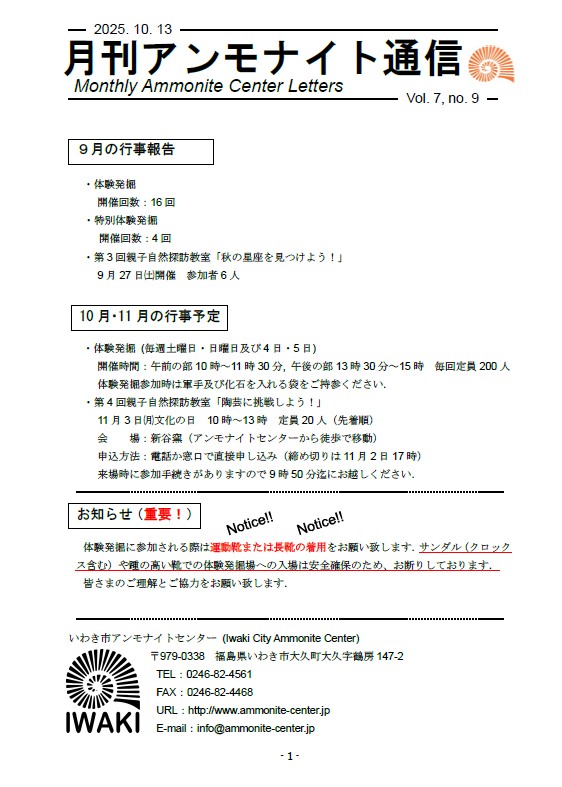 10月13日(月)は開館日ですが、体験発掘は実施致しません。お間違えの無いようお願い致します。