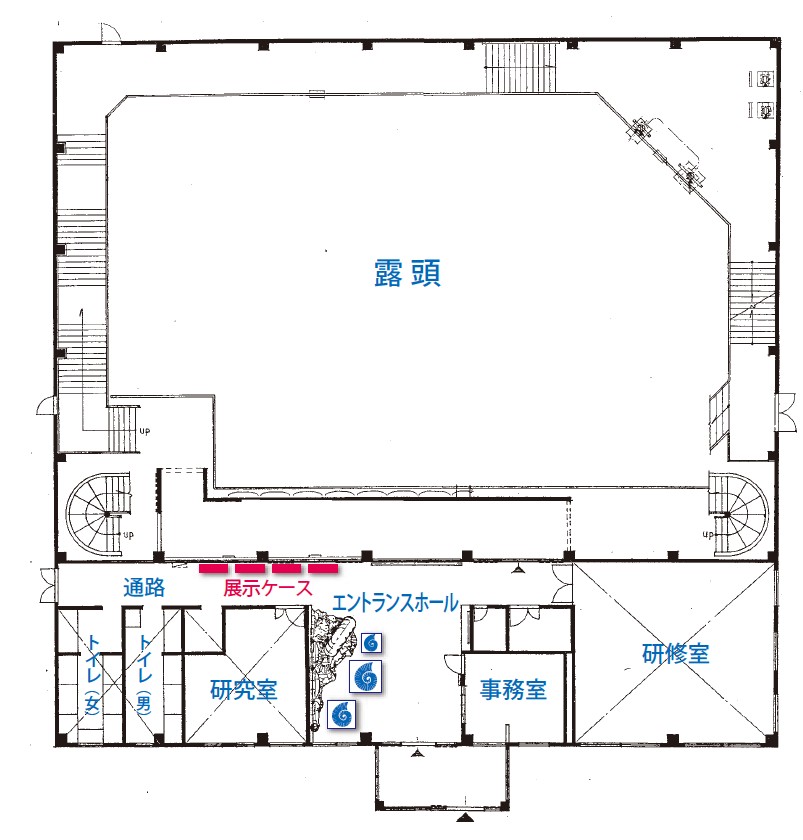 展示してある化石を見たり、体験で発掘した化石を直接手にすることによって、化石となった生物が生きていた遥か遠い昔の地球から、現在の地球に生きるわたしたちへと続いてきた「いのち」とその母体となった地球のすばらしさ・ふしぎさを実感できる空間でもあります。